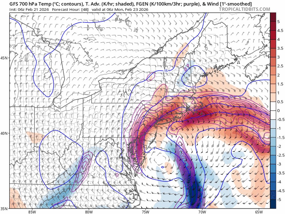 Newman Posted 3 minutes ago Share Posted 3 minutes ago 7 minutes ago, wkd said: What map (800, 700mb) would you recommend to see where banding is likely to set up? I use tropical tidbits. Tropical tidbits 700mb temp advection/frontogenesis as well as the h700 heights/vorticity map. You can see on the GFS the 700mb fronto band continuing to trend east pretty clearly. But again, it's now casting time. It'll soon be time to watching observations and mesoanalysis as to where the bands actually set up. 1 Link to comment Share on other sites More sharing options...