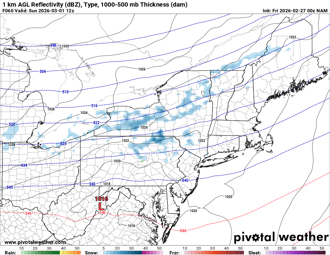 The guidance has shown an increasing signal for another brief period of snow in this fast flow pattern, this time on Sunday. Today's GFS was the most robust yet. This looks well timed with an intrusion of cold from Canada. Could we be trending toward an advisory level event?